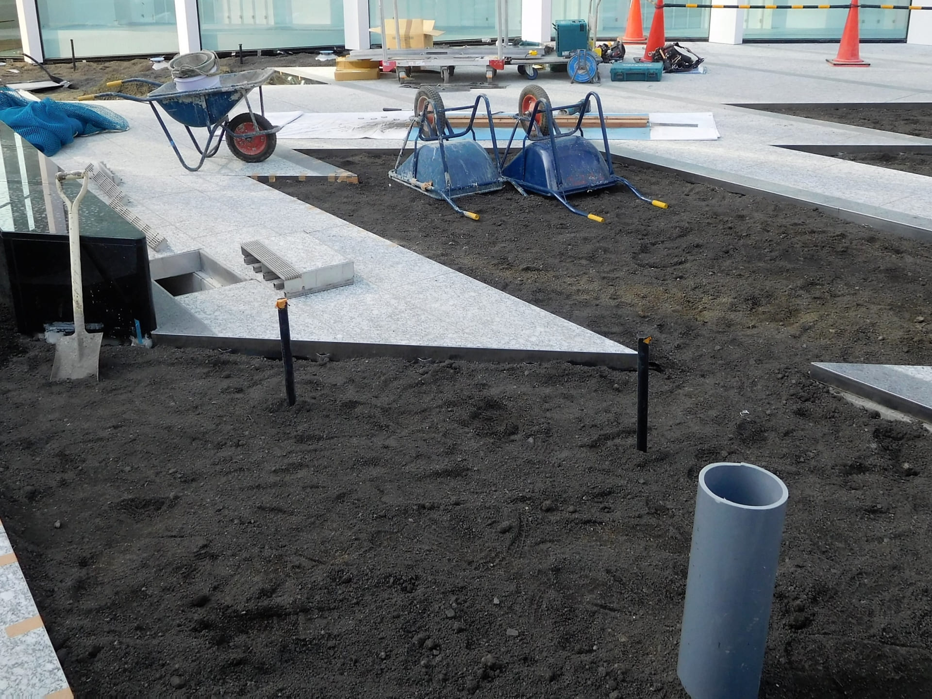 外回りの構造物や建物の重さをしっかりと地盤に伝える土台部分を作っています。